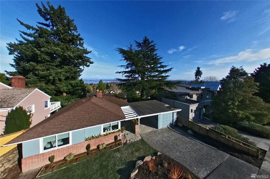 Perfectly situated on View Ridge, a classic mid-century home with sweeping panoramic views in this highly sought after neighborhood. Cozy up in open living rm next to the fireplace and enjoy your surroundings. Two main floor beds with full bath, 3rd bed downstairs with another bath. Bsmt has huge utility rm, workbench, lots of storage and wood paneled bar in family room (w/view) waiting for you to entertain. Spacious backyard recently landscaped with beautiful terraces. Detached garage+carport. Move in ready or create your dream home. Unlimited potential and endless expansion possibilities on this 8,060 SF lot. A few blocks to everything: Magnuson, BG Trail, VR Fields, UW, Met Market, PCC, U Village, Top Pot, Grand Central, MioPosto & SPCC.